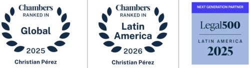 - Destacado como “Abogado Destacado” (“Up and Coming”) por Chambers and Partners Global y Latinoamérica en Solución de Conflictos.